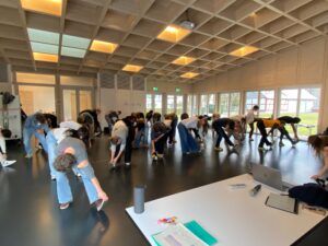 Auch wurde gemeinsam eine erste, simple Tanz-Choreo zu einem der Lieder des Stücks eingeübt. Parallel dazu fand ein Vorsingen statt, bei dem die gesanglichen Qualitäten unter Beweis gestellt werden konnten.